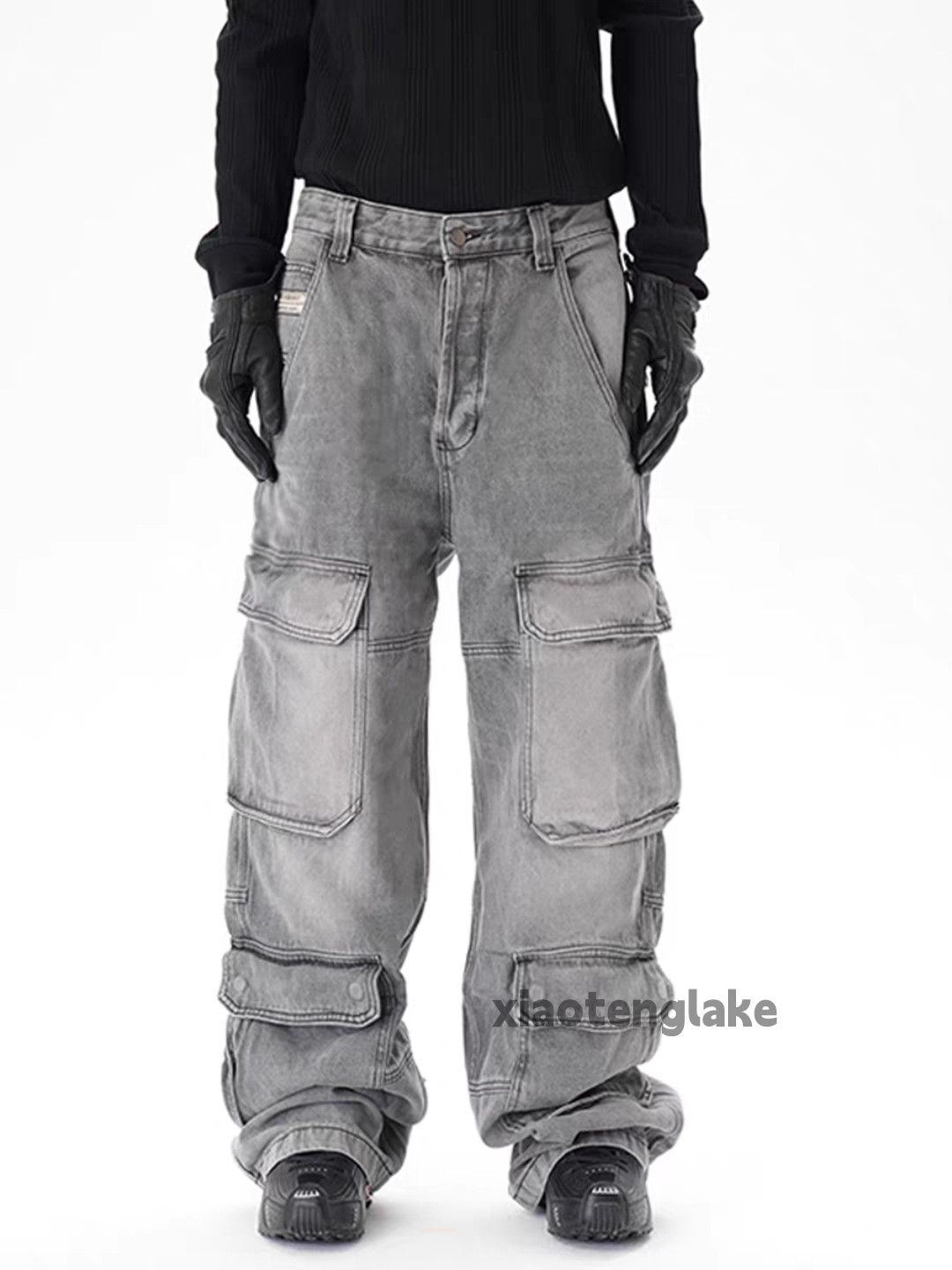 - Menswear >Bottoms >Denim > unisex washed faded loose baggy skate cargo jeans