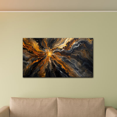 | Product Features | Details:This painting presents a combination of black and gold colors with energy spreading in all directions, mysterious and deep. Ideal for those of you looking for a high-end texture, hang it in a conference room or private club for a calm yet luxurious tone. Printed on canvas and wrapped in gallery form on a solid wood frame, these pieces are available in a variety of sizes to best fit your space. These prints also come with mounting hardware for easy installation immediately upon arrival. Wrought Studio™ Size: 12" H x 18" W | ||